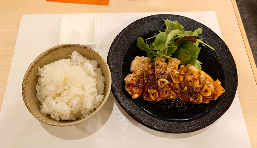 「まるいち」で頂く、いも豚のガーリック焼き&ガス直火炊きご飯となります