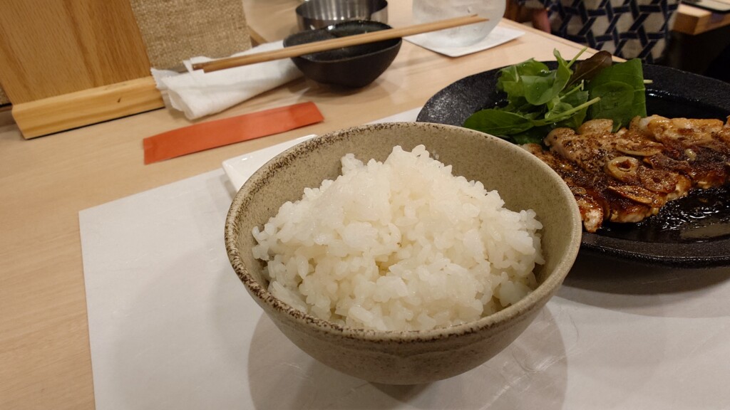 そんな訳で本日は、いも豚ガーリック焼き共に直火炊きご飯を頂いてみることに。
