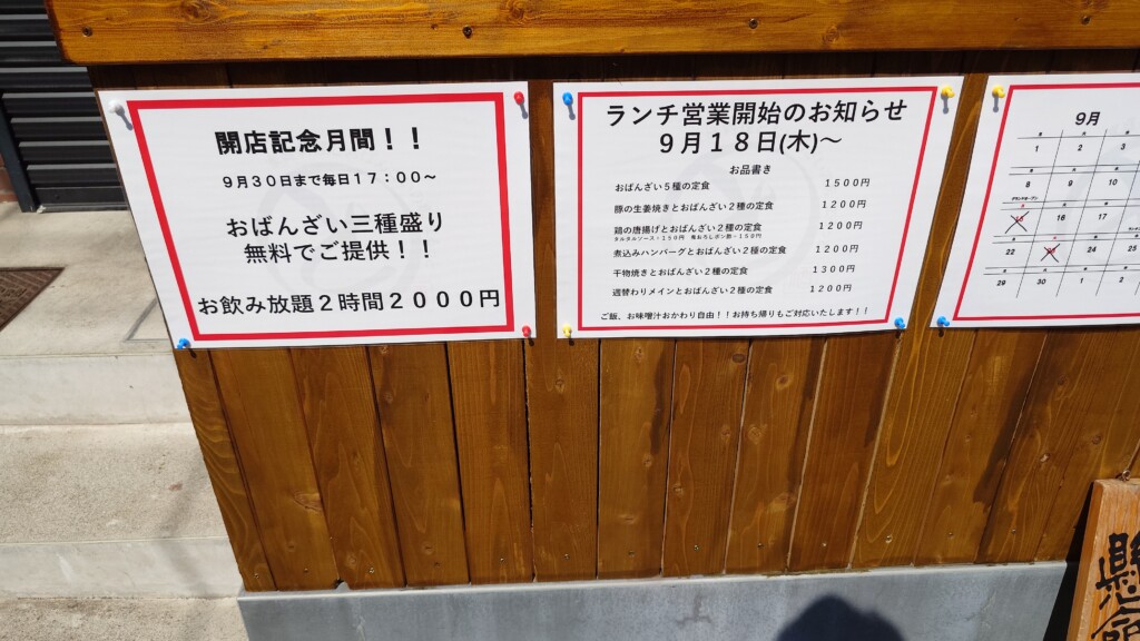 9月いっぱいのサービスにはなるものの、17時以降の夜の部訪問でおばんざい三種盛りが無料