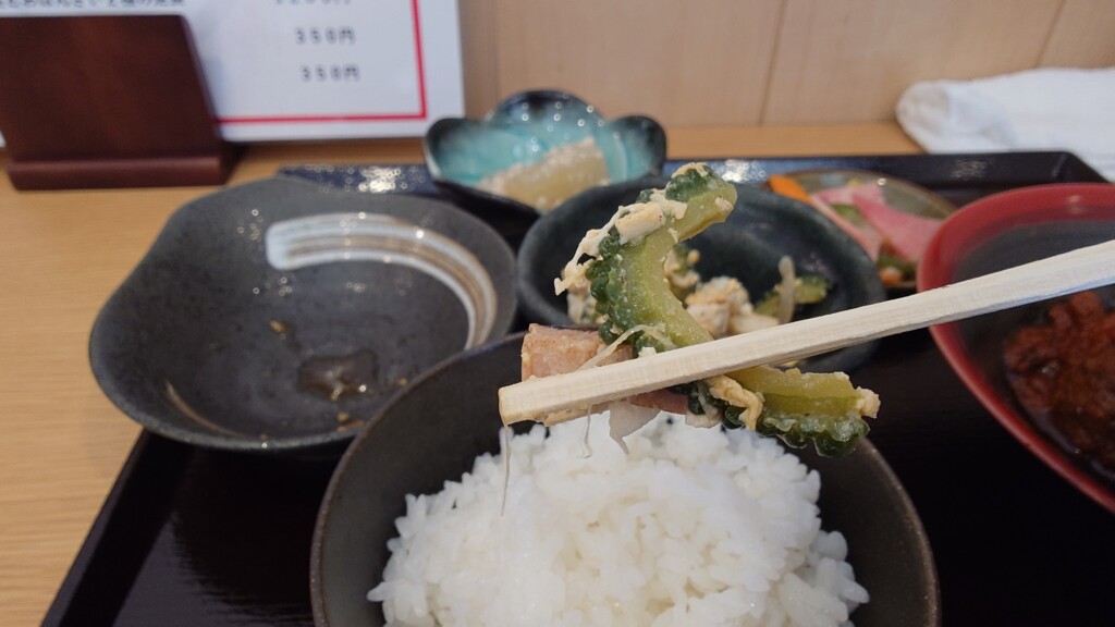 同品もゴーヤチャンプルー同様に、作り置きと思われるおばんざい
