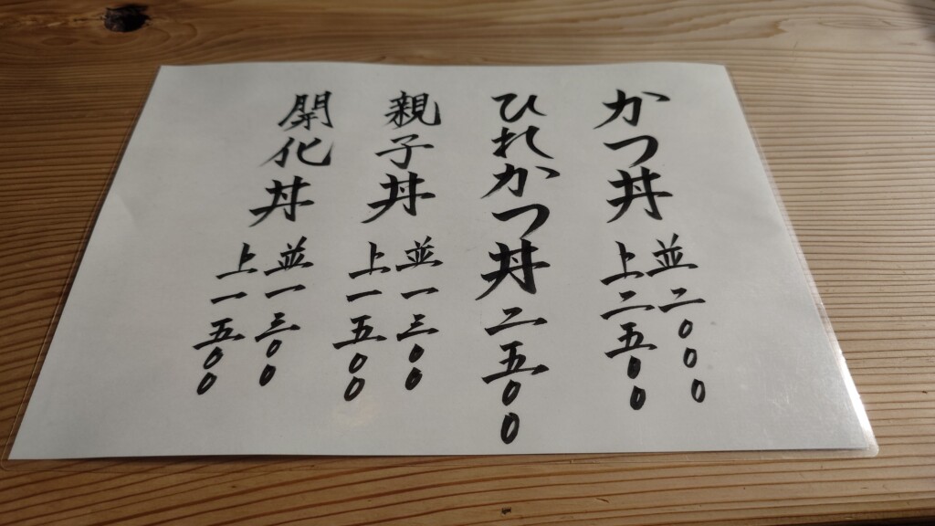 13時半がラストオーダーとなる同店ですので、すでに上カツ丼は品切れとのこと