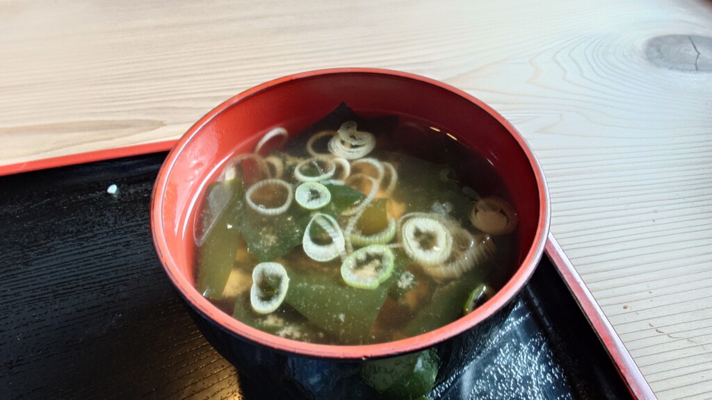 こちら、アツアツなワカメたっぷりお味噌汁もまた