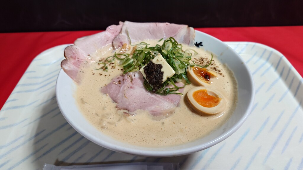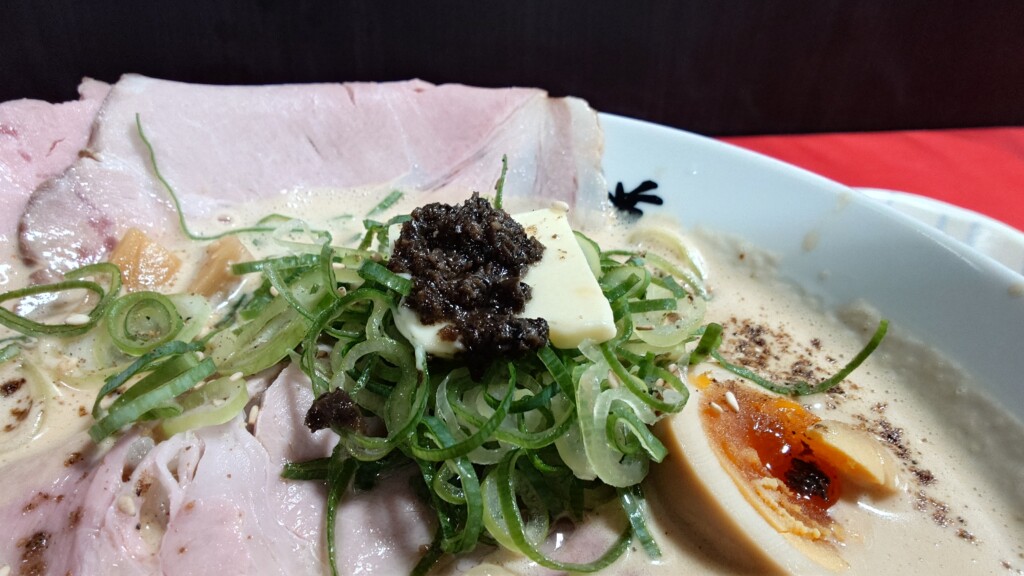 札幌のラーメン店 麺 鍾馗で頂く、トリュフバター北海道白い味噌ラーメンスペシャル