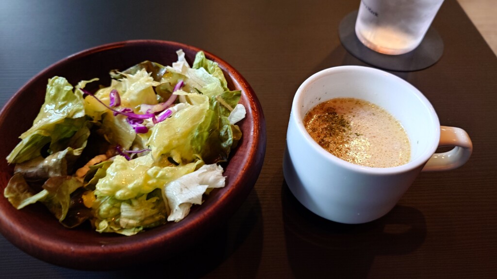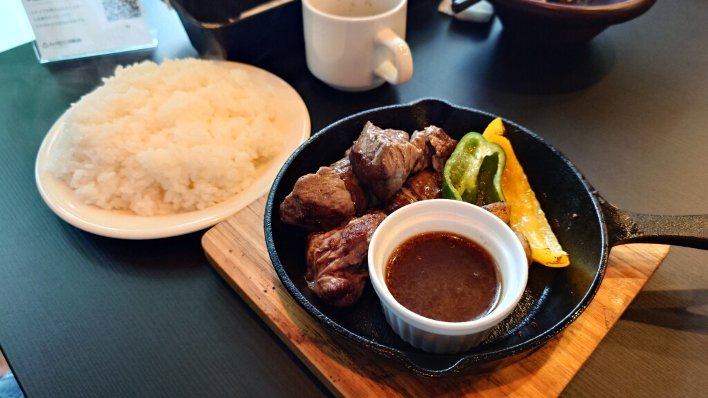 カレーにドリアも魅力的ですが、本日はカットステーキランチを頂いてみることに。