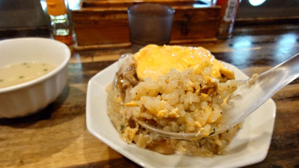しっとり仕上がりのチャーハンとなるのですが、それであればこその染み入る旨味がもう格別で