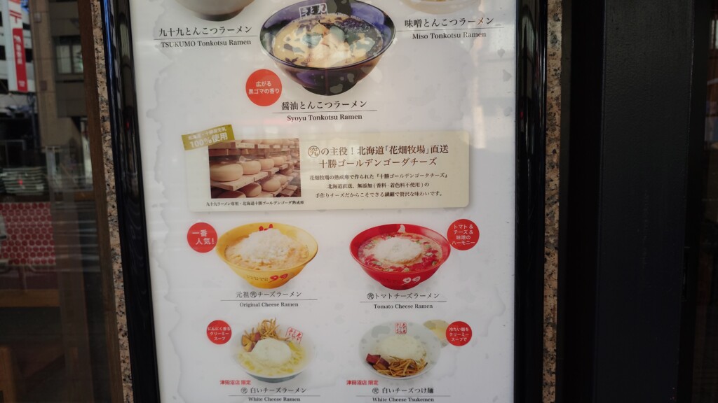 「九十九ラーメン 津田沼店」にて頂く、白いチーズラーメンとなります