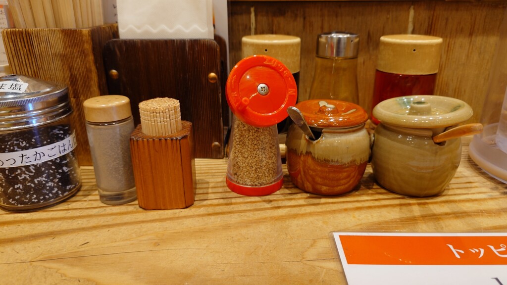 おろしにんにくに豆板醤、胡麻といった定番各品に加えまして