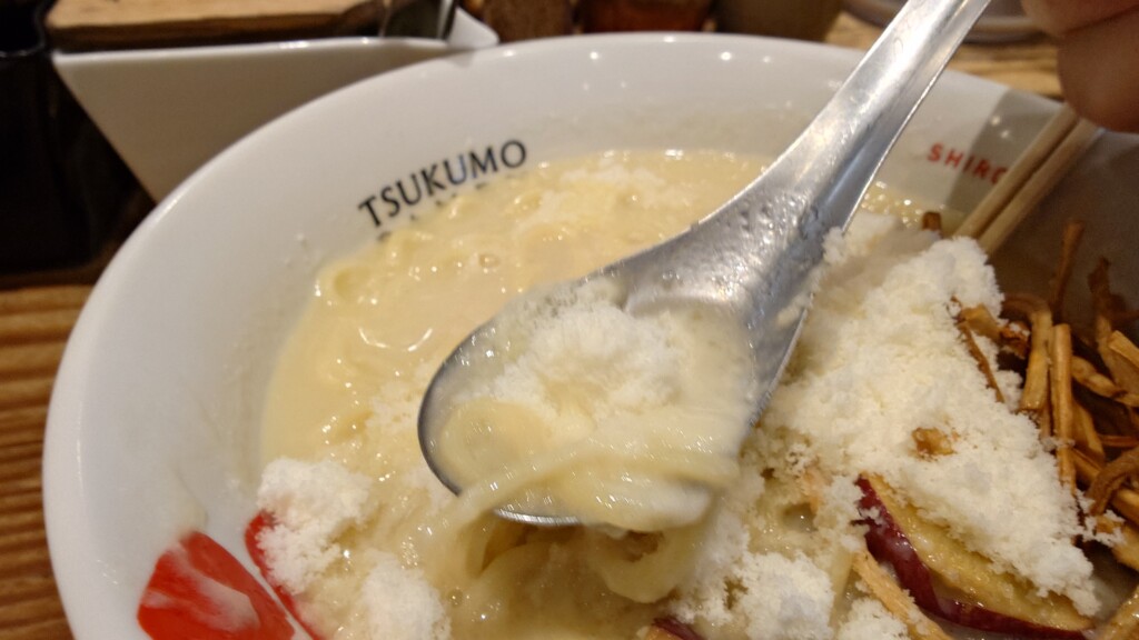 津田沼駅前通りの元祖チーズラーメン 九十九ラーメンにて頂く白いチーズラーメン