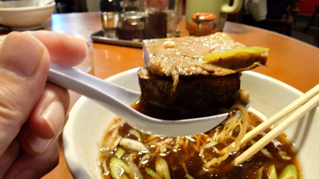 トロトロに仕上がりつつも、味染み十分過ぎるチャーシューが盛大にトッピング