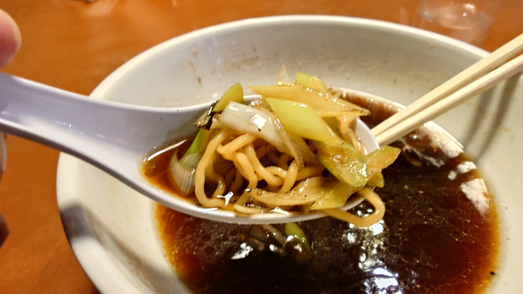 最後はスープの中に残るネギを全てすくい上げ、そのまま口の中へ