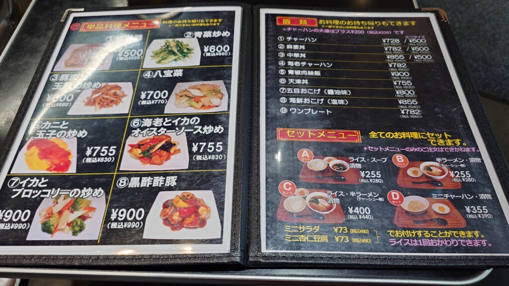 ミニ酢豚やミニ海老チリらを付けたセットメニューも並ぶ同店