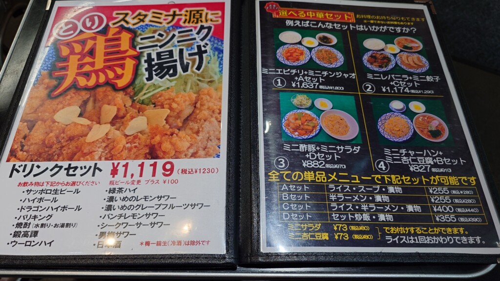 五目ラーメンにスタミナ唐揚げらも並ぶ同店