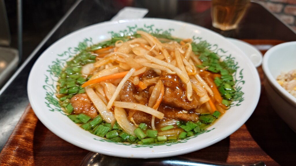 雰囲気としてはレバニラ炒めをトッピングしたラーメン、といった印象に