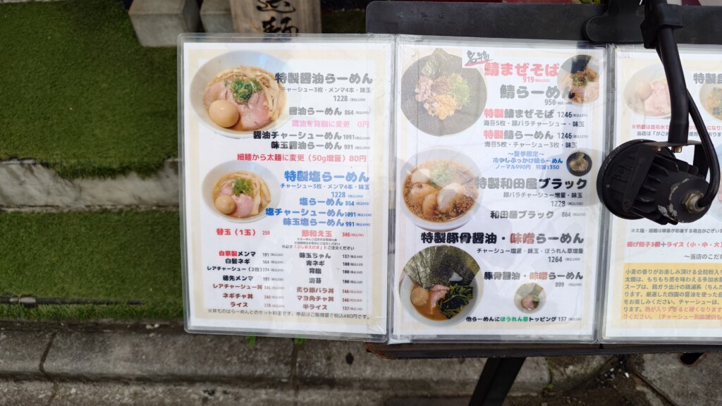 竹岡式を彷彿とさせる和田屋ブラックに特製豚骨の醤油、味噌らーめんといった各品