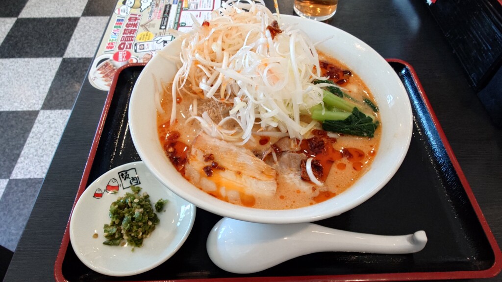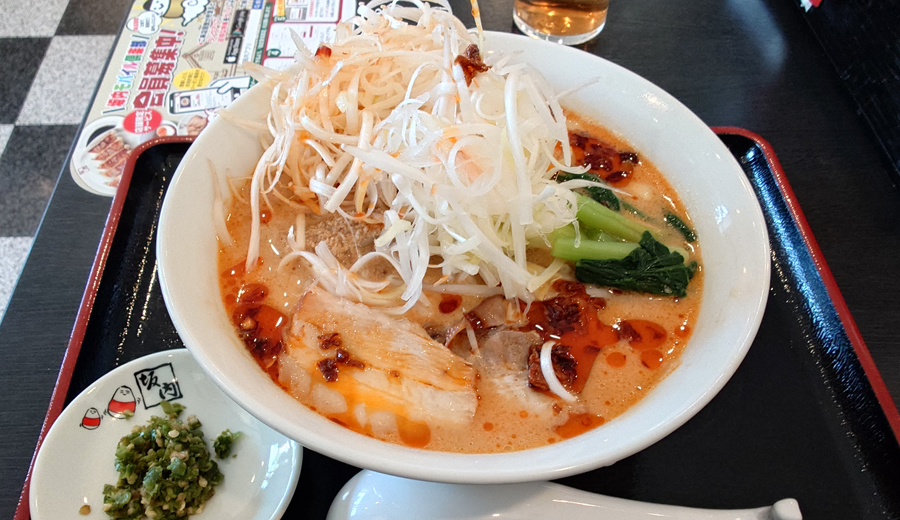 本日はこちら、濃厚ごまみそラーメンを青唐&ピリ辛ねぎ追加で頂いてみる事に。