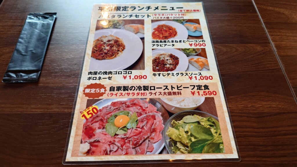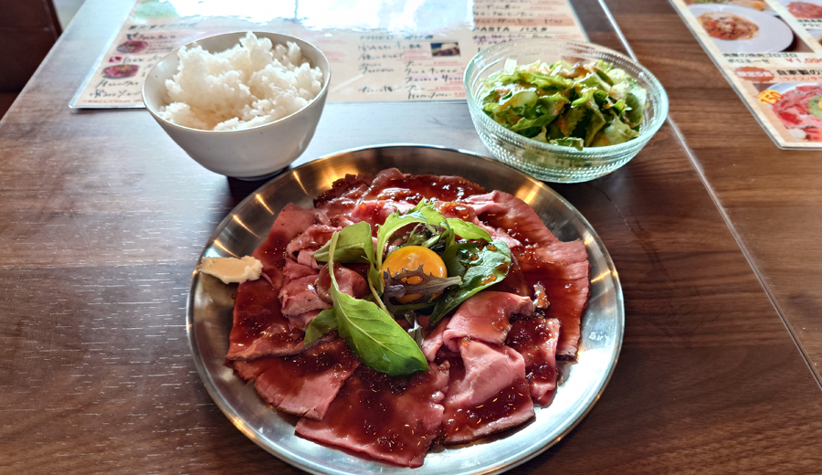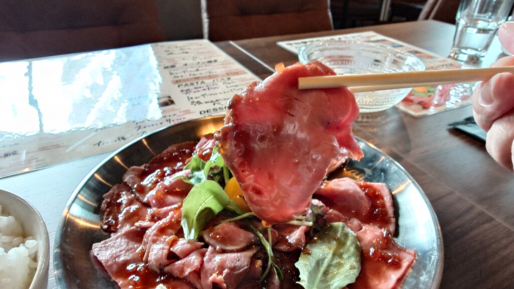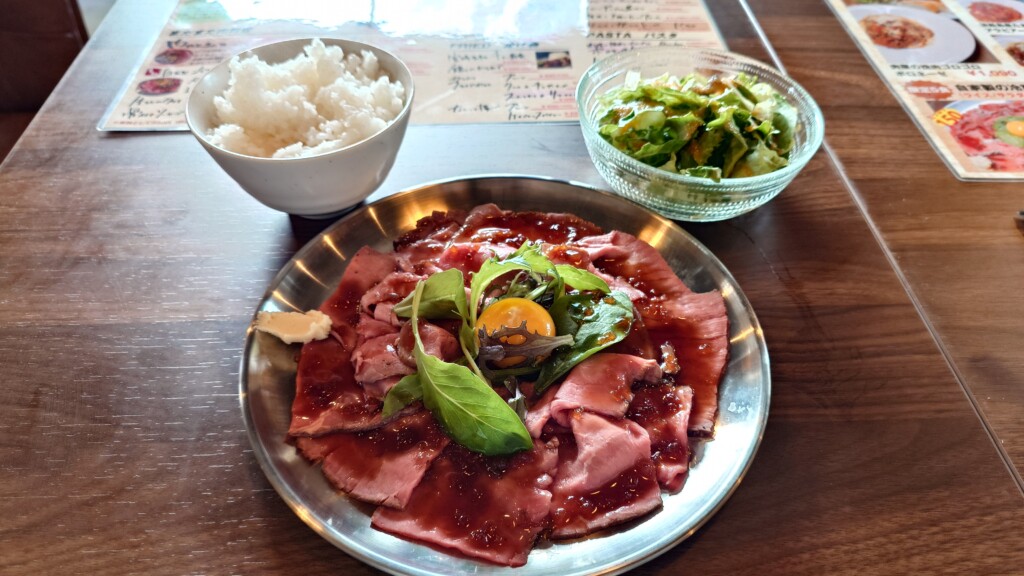表でも目にした通り、自家製の冷製ローストビーフ定食といったラインナップに