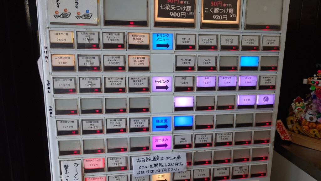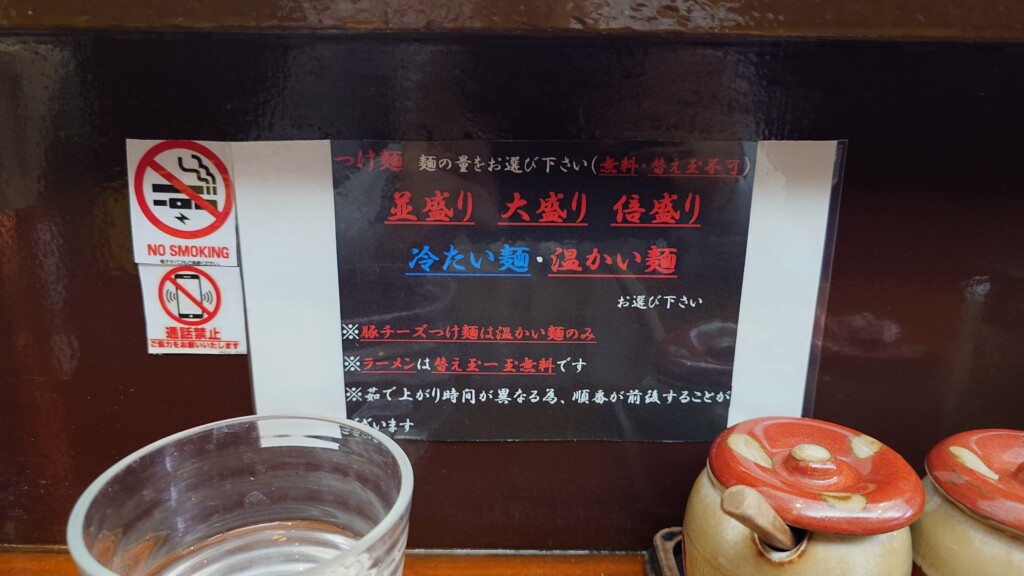 前述したつけ麺の中から2種、それとラーメン各品のみを提供とのこと
