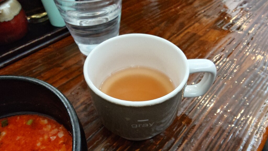 割スープを頼んでみたところ、上記の通りマグカップにて提供に