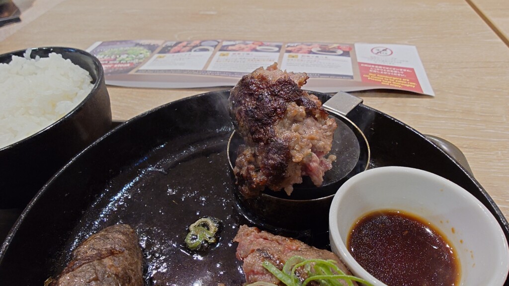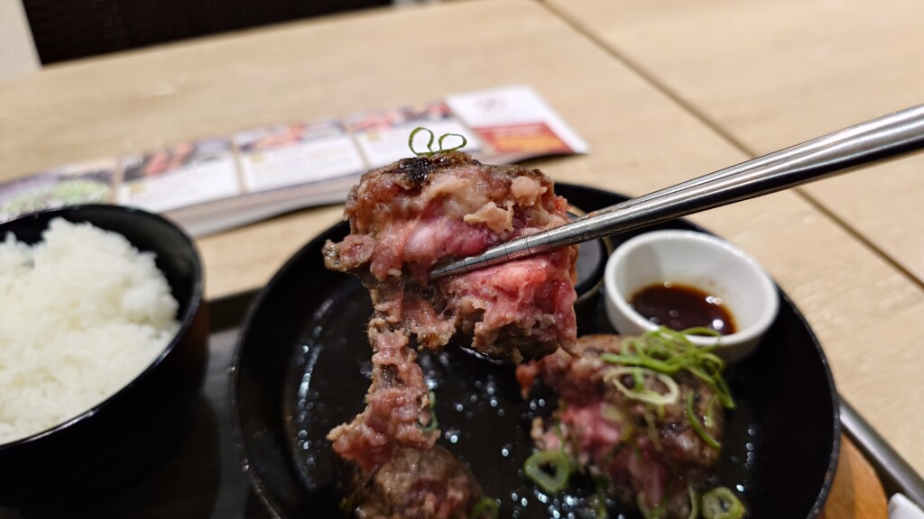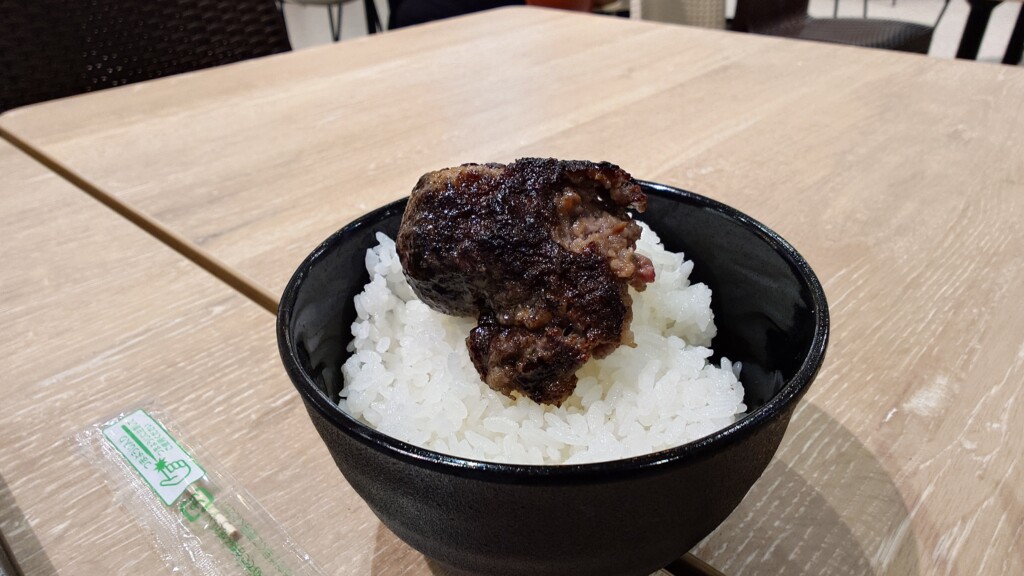 レアな状態から火入れしたハンバーグについては、未だ柔らかさ残す食感