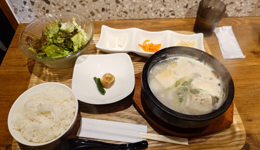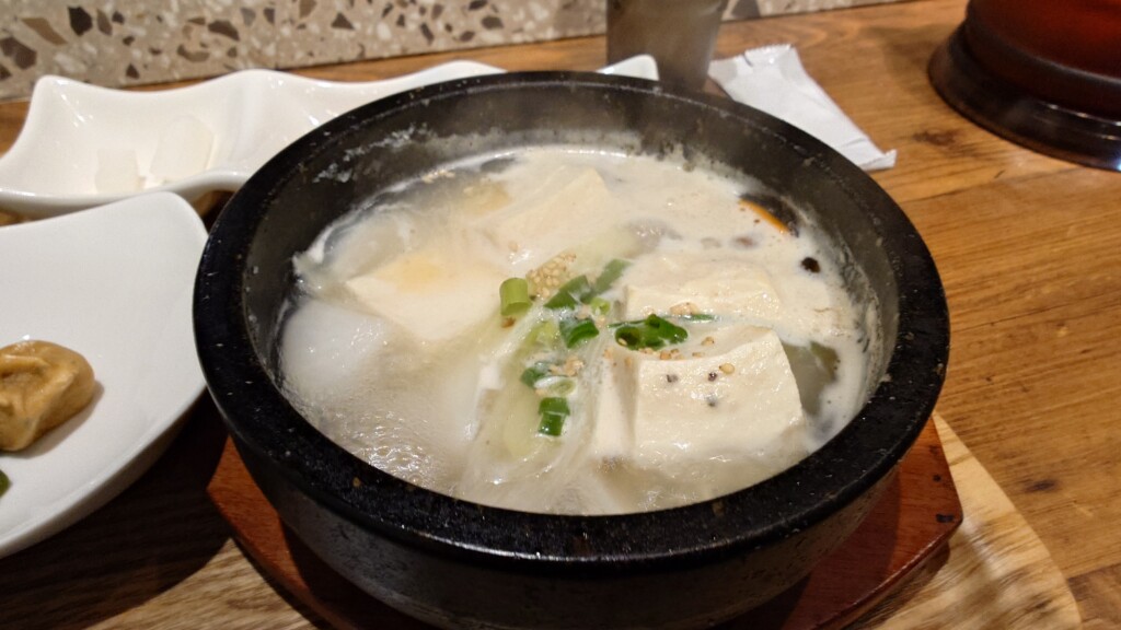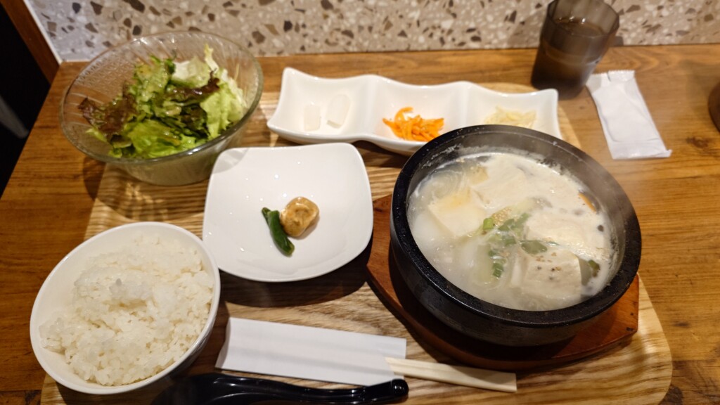 本日は胃腸に優しいランチを頂くべく、こちら白いスンドゥブ定食をオーダーしてみることに。
