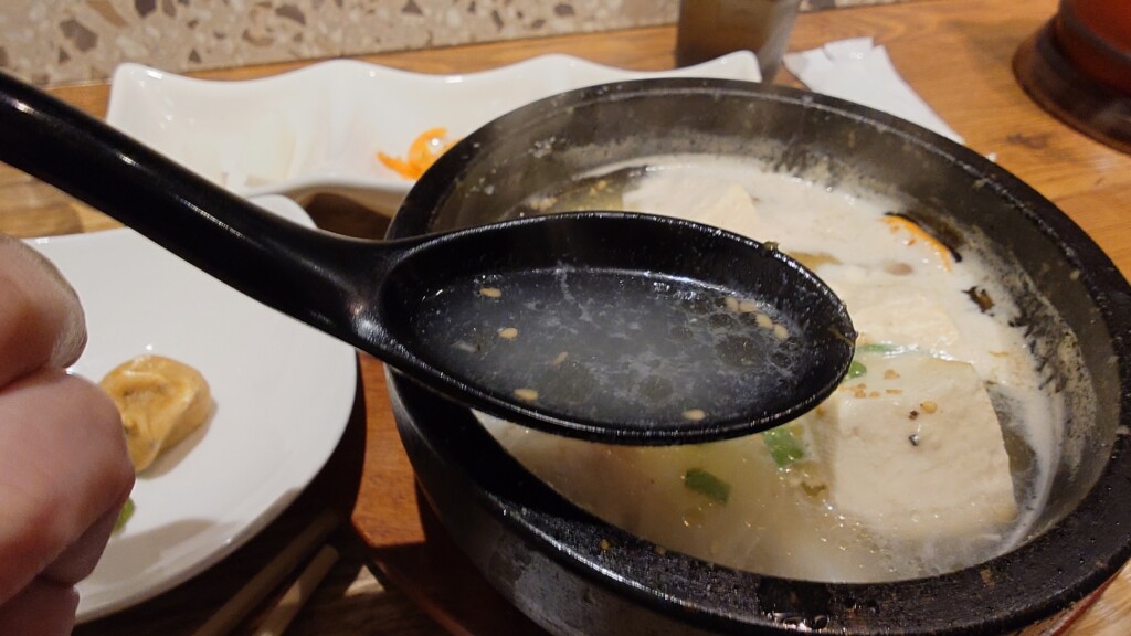 一般的なスンドゥブの様な辛さを感じさせない、白いスープ
