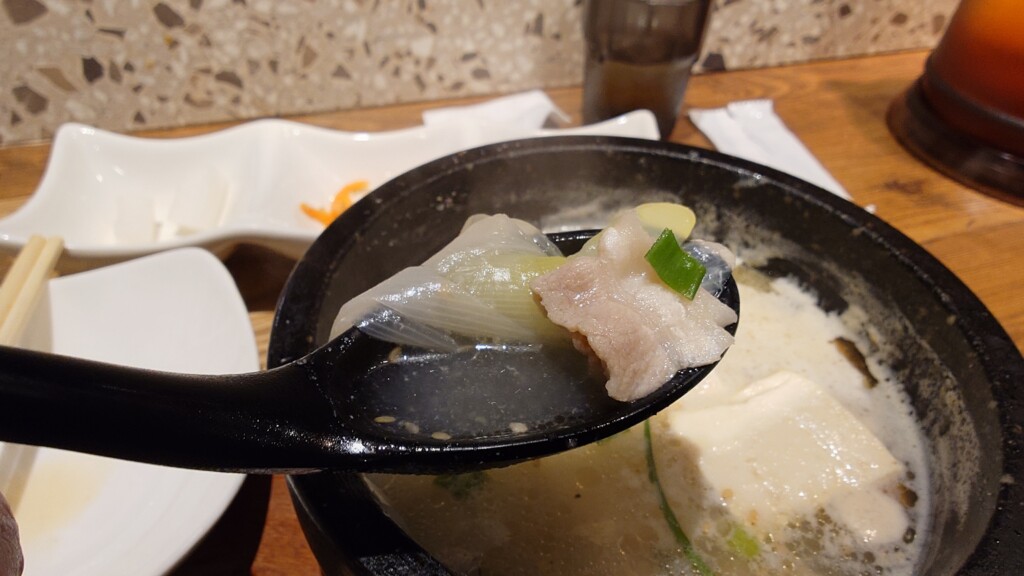 ソルロンタンを思わせる味わいとなっており、ベースとなるのは牛骨か