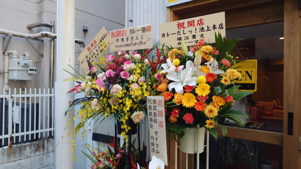 まだオープンから間もないお店とあって、店舗前にはお祝いの花も飾られているのですが