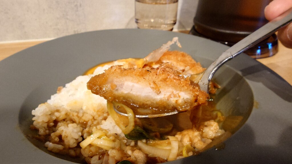 そのサイズ故ではあるものの、カツ自体は柔らかな肉を使用、カレーとの調和にも納得の品に