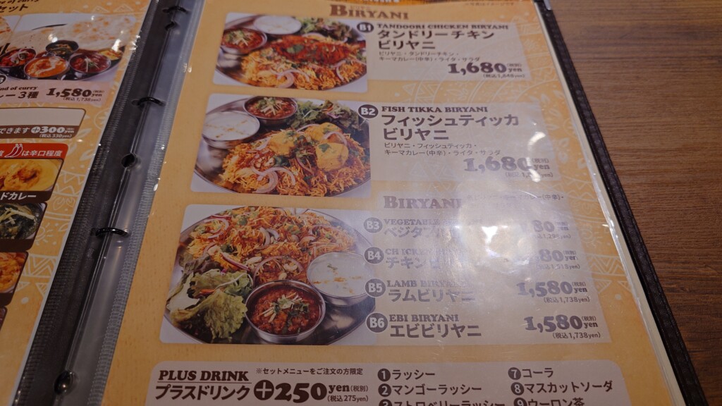 提供しているお店が限られるのはもちろん、品数も限定的なメニューが中心となるビリヤニ