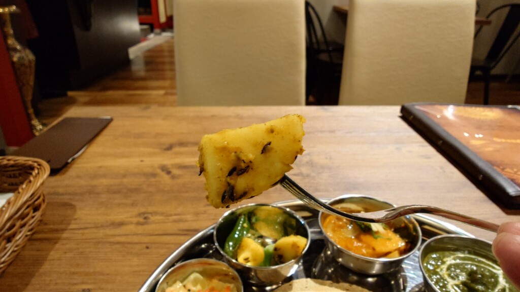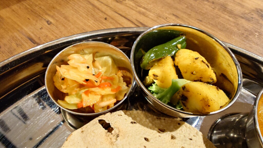 本日はじゃがいもにインゲンらをスパイスで和えたサブジを提供