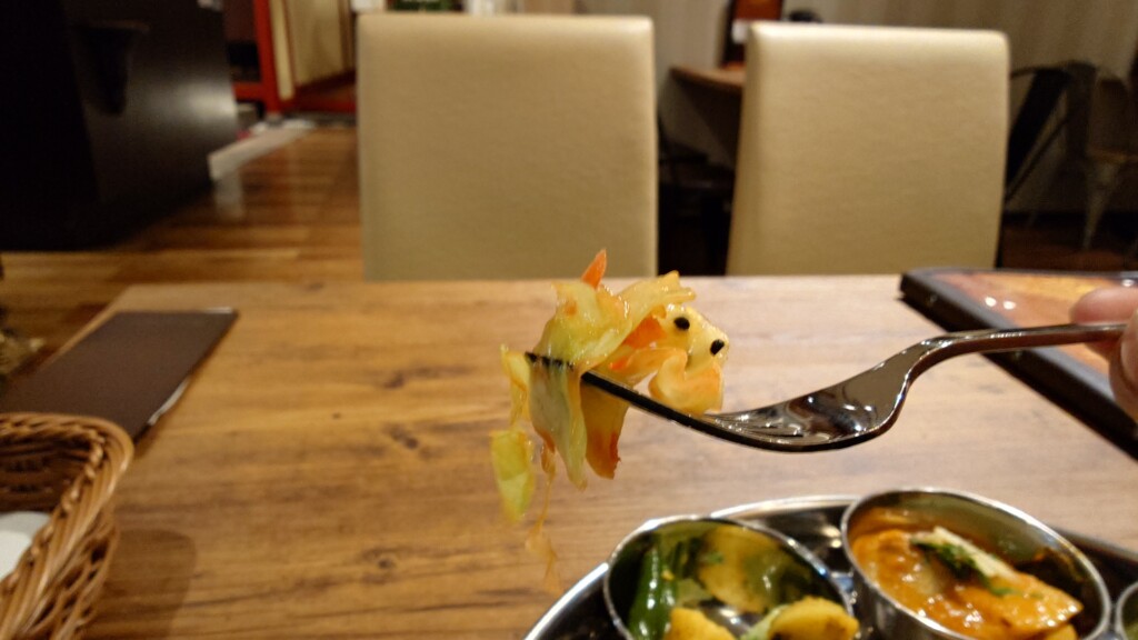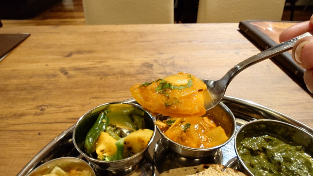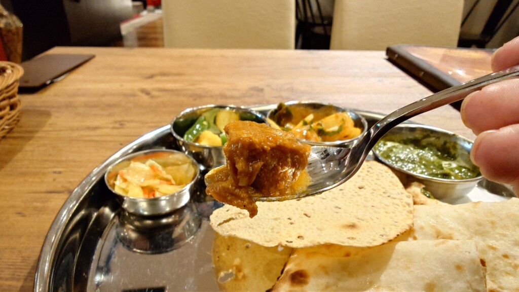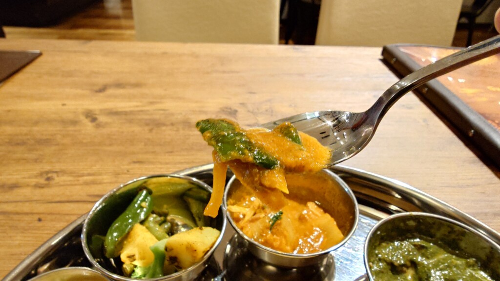 先に頂いたラムサグよりも、強く広がる辛味が特徴のカレー