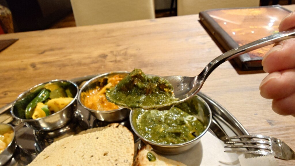 このチーズがもたらす、まったりした味わいとサグカレーとの組み合わせがまあ美味い訳で