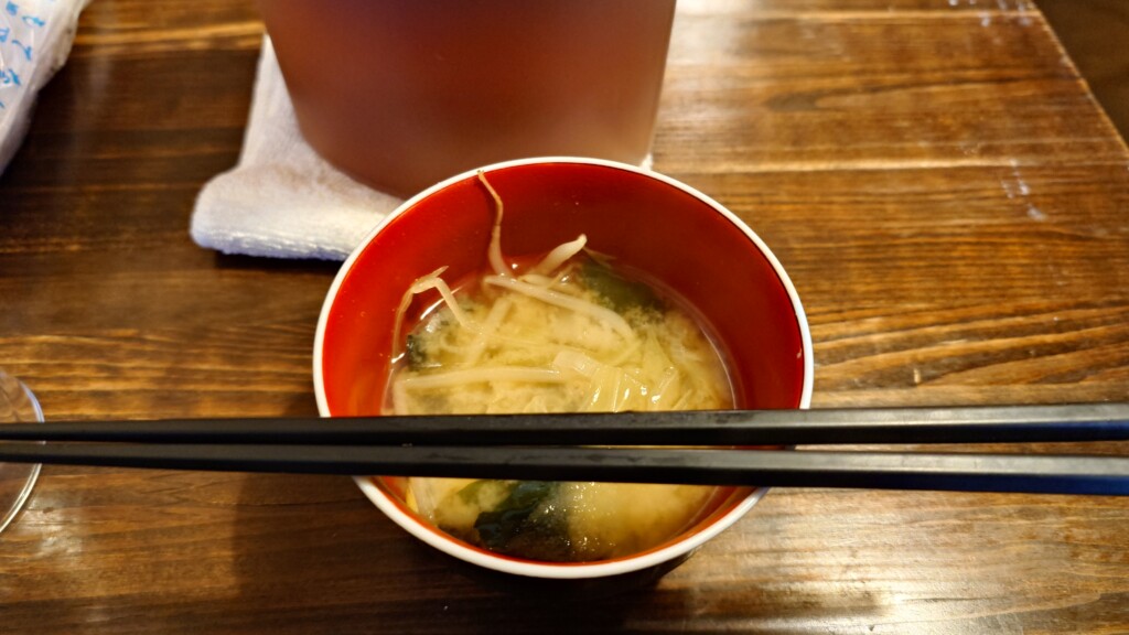 そしてお味噌汁も提供され、これでお値段が600円なのだから、お客さんが殺到するのも当然