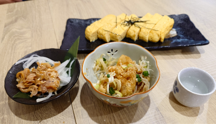 あご出汁の玉子焼きらを卓上に取り揃えつつ