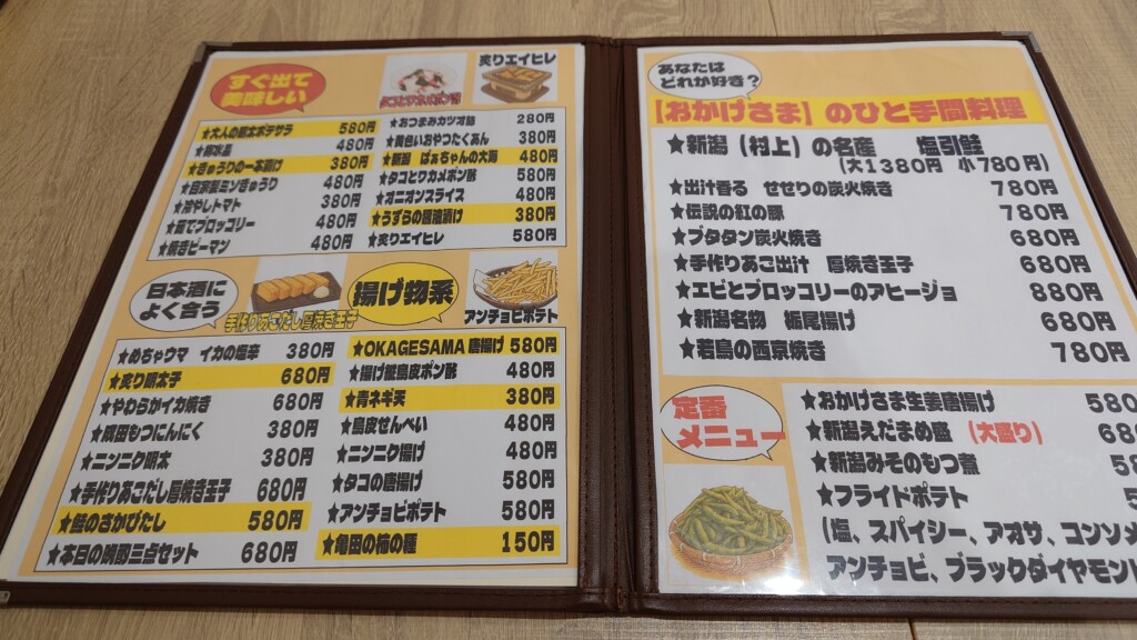 その為か、新潟の名産である塩引鮭や栃尾揚げなど、新潟の郷土料理が味わえるのも特徴