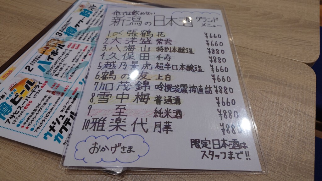 特にこちらのお店は店主さんの奥さんが新潟県出身