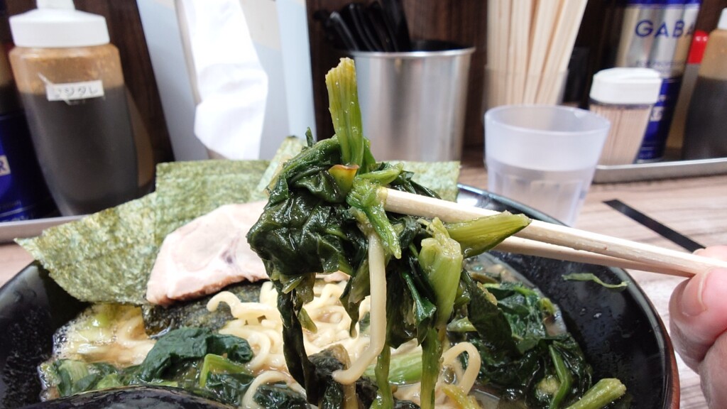 ほうれん草もしっかり追加し、久々の家系ラーメンを味わってみることに。