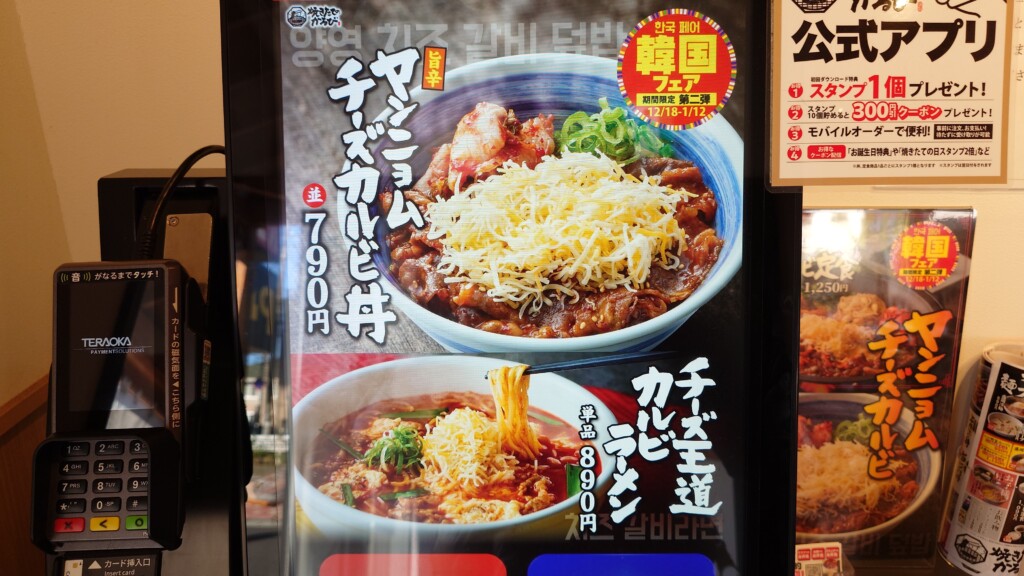 ヤンニョムチーズカルビ丼、そしてチーズ王道カルビラーメンが頂けるとのこと