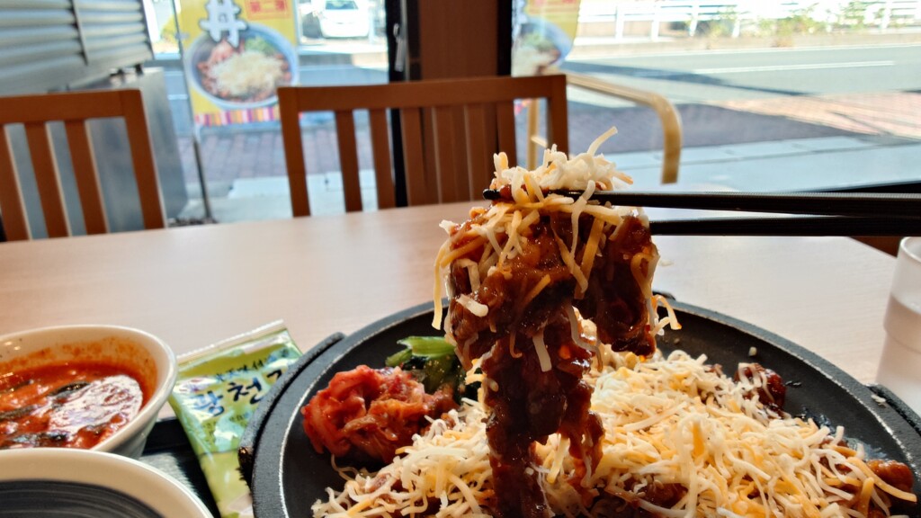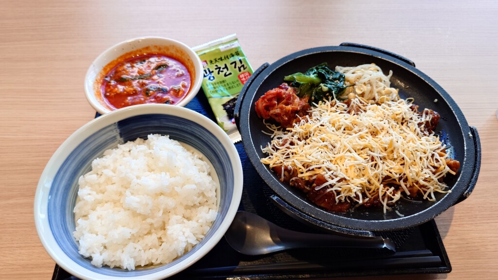 少しやる気を出してしまい、鉄板ヤンニョムWチーズカルビ定食をご飯大盛りにてオーダー