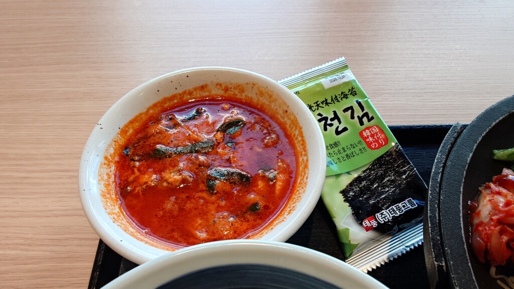 セットで提供されるスープについても、こちらの通りユッケジャンへと変更
