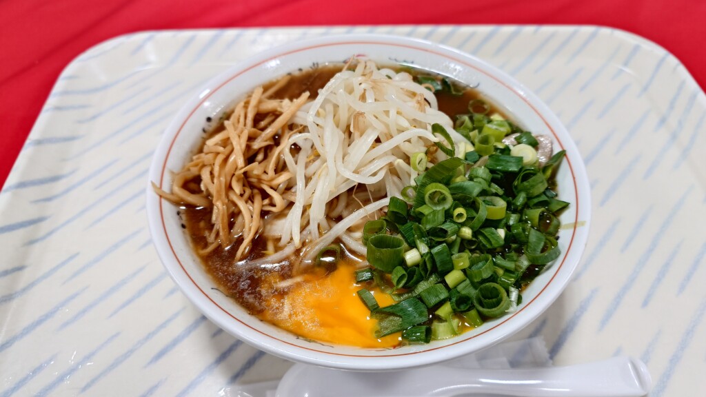 ご当地うまいもの大会のくじら食堂にて頂く、月見ラーメンとなります