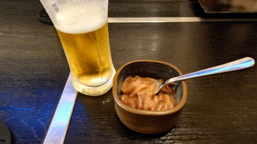 まずはビールと共に、イカの塩辛をオーダー