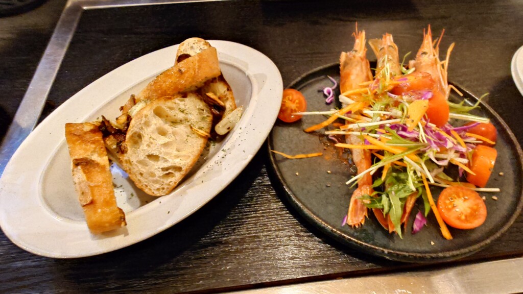 ガーリックトーストと、本日のカルパッチョから