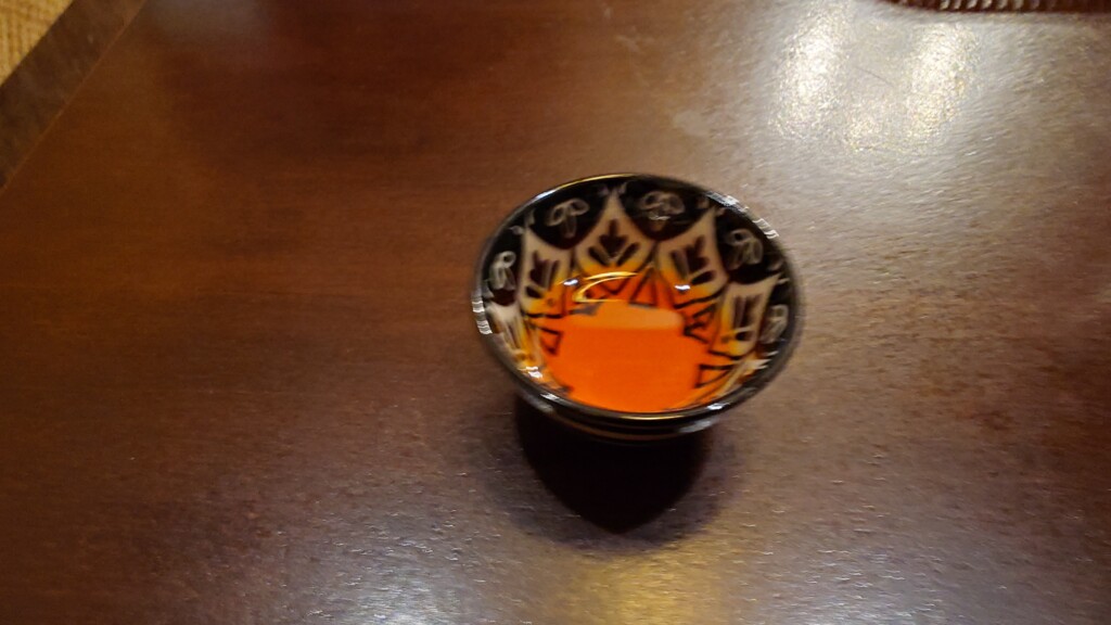 こちらの取り皿にてまずはチリオイル入りを試すことに