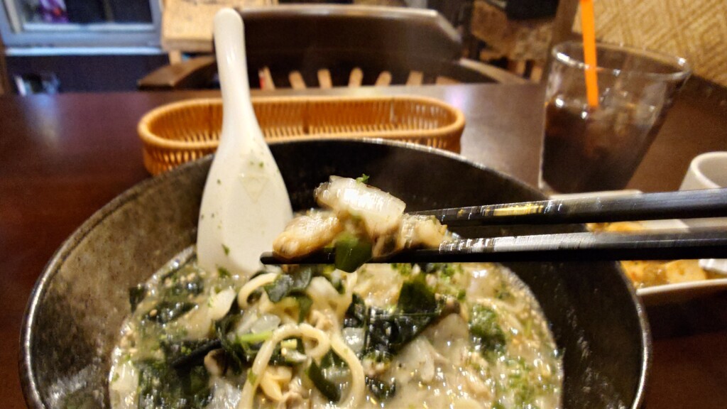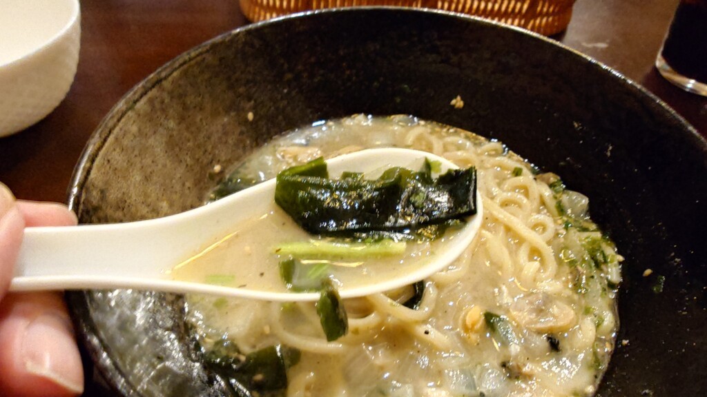 牡蠣にあさりに貝はもちろん、ワカメまでもが最高に美味い一杯 潮豚骨ラーメンを堪能