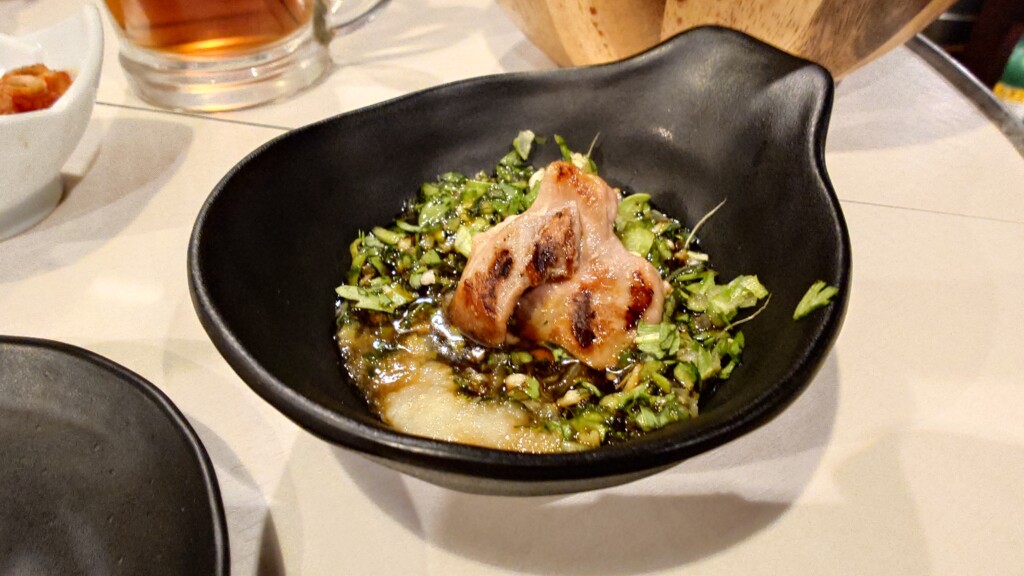 やや濃い目のタレ、そしておろしにんにく