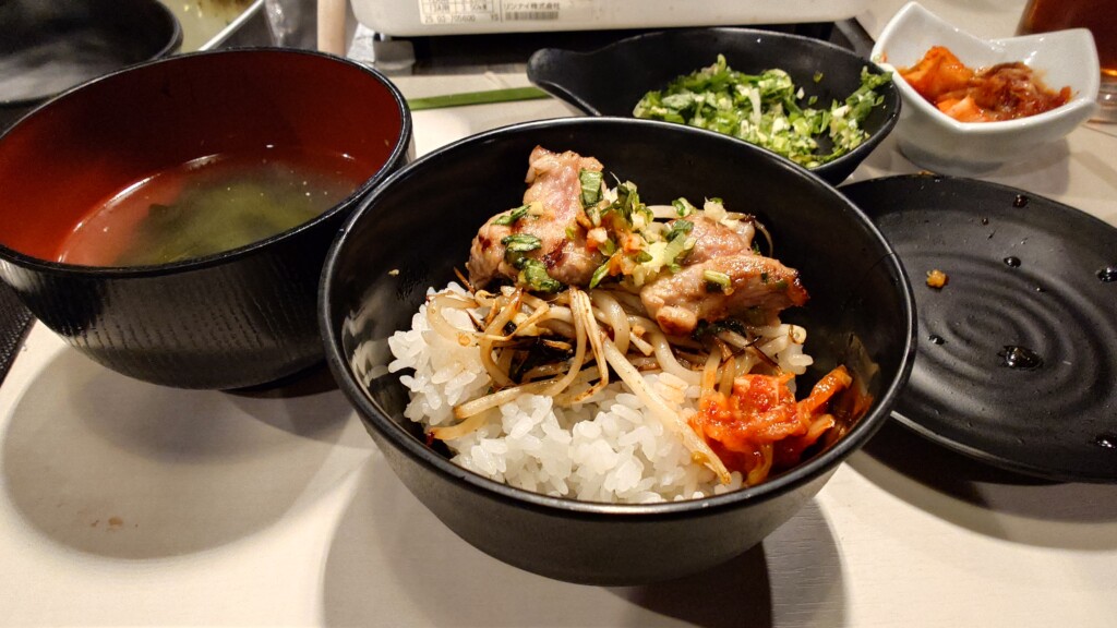 薬味にキムチ、そして食べ放題となるスープも提供される同店ランチ
