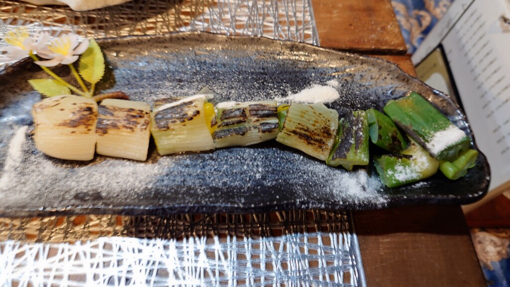 丸々太った下仁田ネギの素焼きなんかも頂き