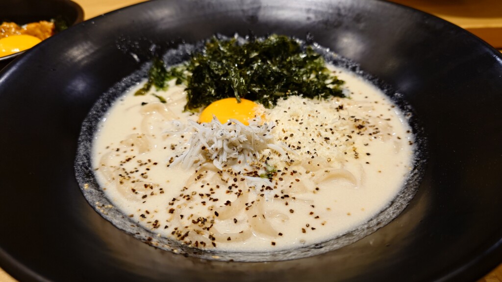 レギュラーメニューを吟味した結果、本日は海苔ぼなーらクリームうどんを選択