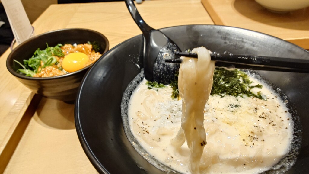お出汁を共に味わう事を主とする同店なら、このうどんもむしろアリな組み合わせに